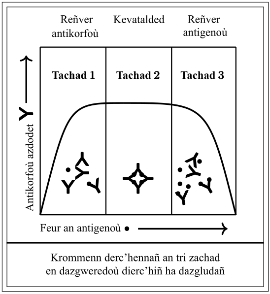 Ezvezañs a zazgwered un antikorf spesadel gant e antigen keñverek e daou zegouezh : a) emañ feur an antikorfoù re uhel ha b) pe re izel. War grommemm derc'h ennañ an dierc'hiñ pe an dazgludañ e lakaer war wel tri zachad, an hini kentañ anvet raktachad , an eil anvet tachad kevatalded hag an trede, an diandachad . A se e komzer a anadenn ar raktachad hag a anadenn an diandachad (sl. prézone : phénomène de prézone ou phénomène de prozone )